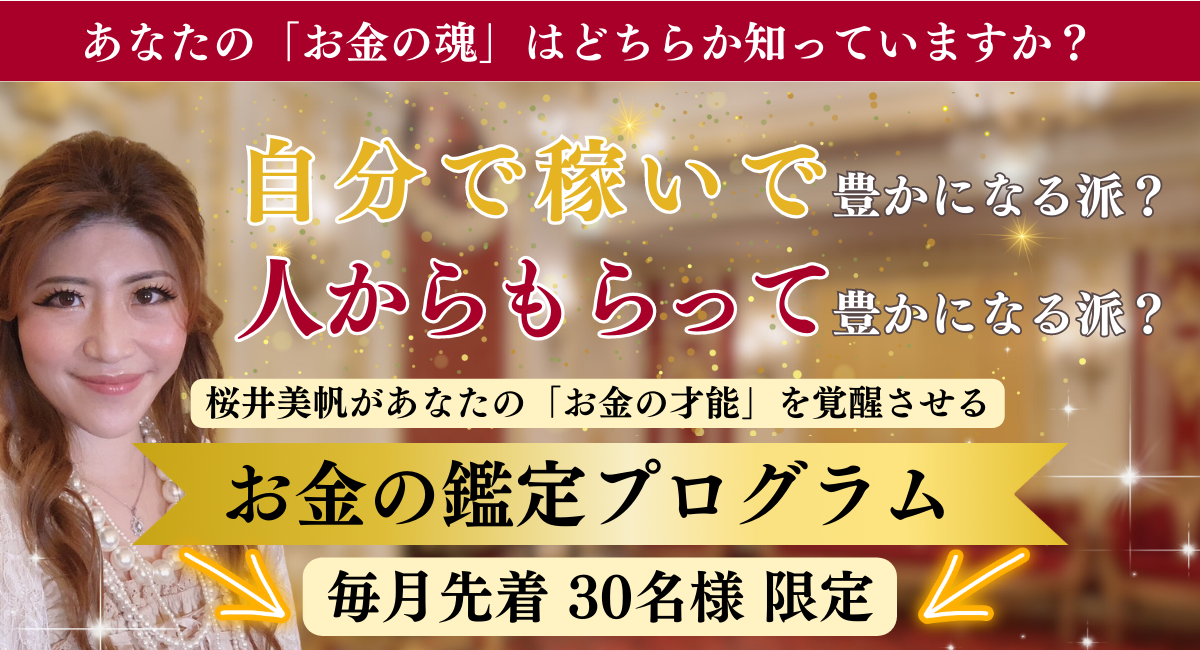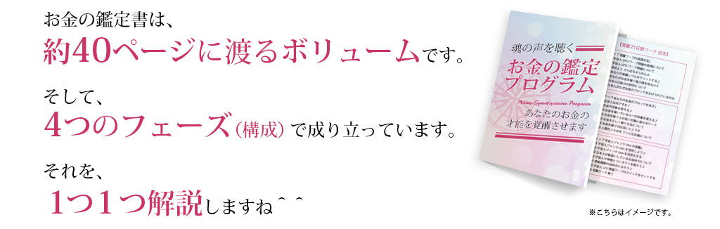 この度は「お金の才能」を覚醒させる『お金の鑑定プログラム』 にご興味を持って頂き、どうもありがとうございます♪